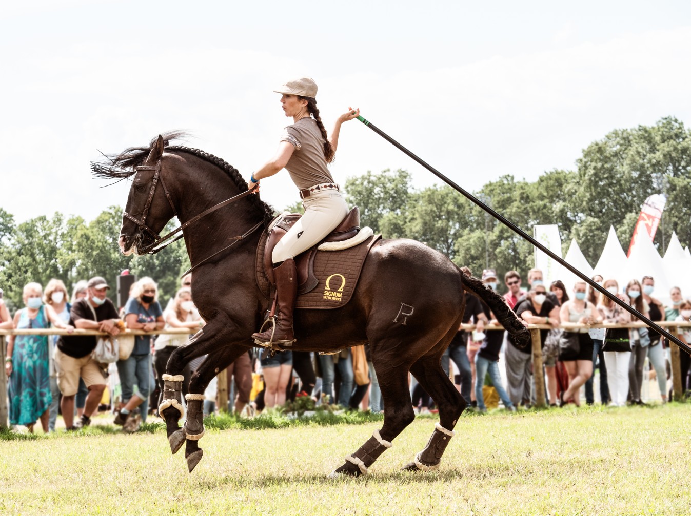 Eine Garrocha ist eine 3-4 m lange Stange aus Holz oder Kunststoff, die aus der traditionellen spanischen Reitweise stammt und durch den Reiter vom Pferd aus verwendet wird. Ursprünglich war die Garrocha ein Werkzeug der spanischen Vaqueros – berittenen Rinderhirten – um ihre Herden zu treiben oder auf Abstand zu halten. Heute ist daraus eine eigene Kunstform geworden: der Tanz mit der Garrocha. Kraftvoll und gleichzeitig leicht, mit schnellen Wechseln zwischen Versammlung und Dynamik zeigen Pferd und Reiter mit der Garrocha ihr Können auf höchstem Niveau.