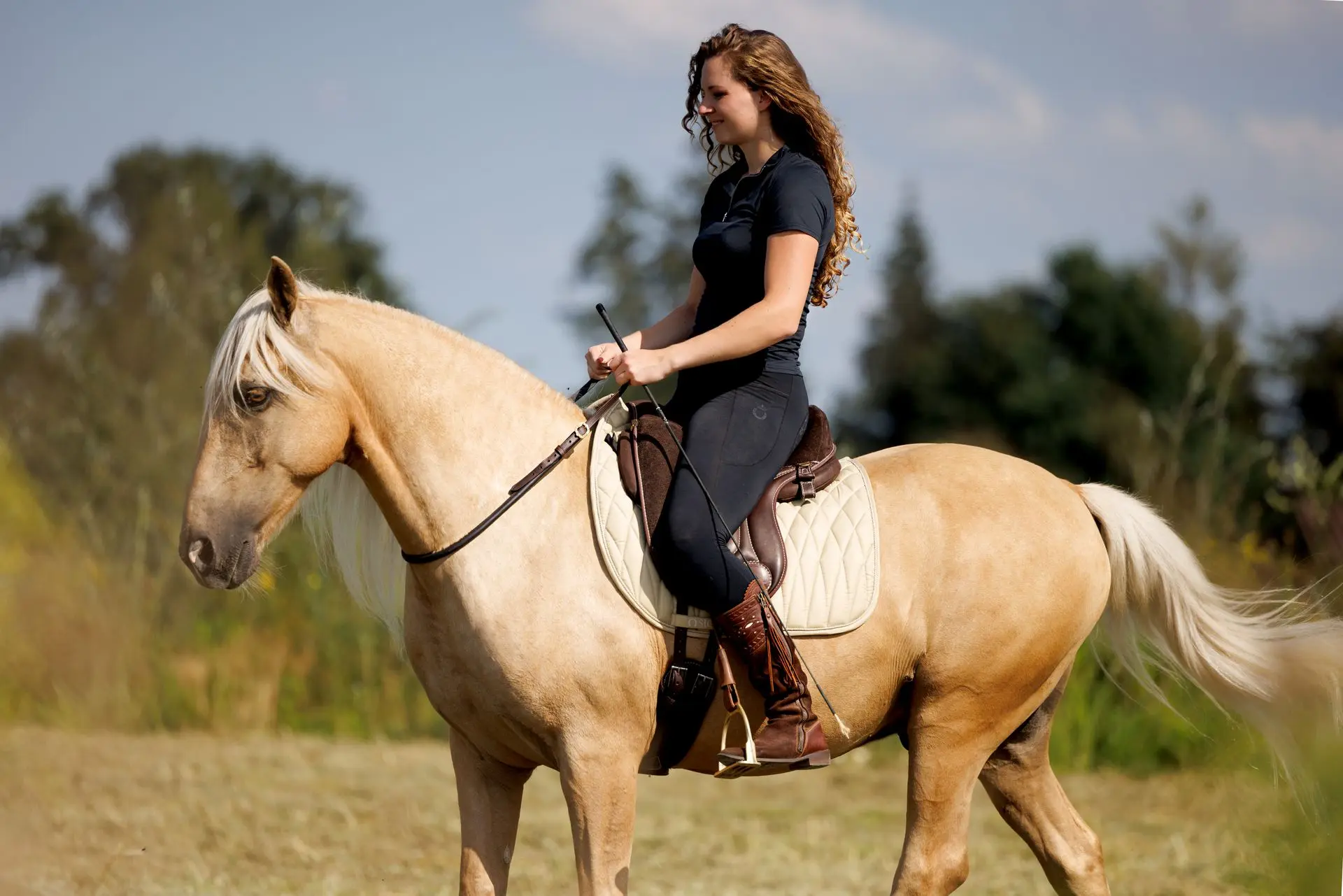 Beim Reiten mit Halsring erfolgt die Lenkung hauptsächlich über Schenkel- und Gewichtshilfen – der Halsring wird nur ergänzend eingesetzt: