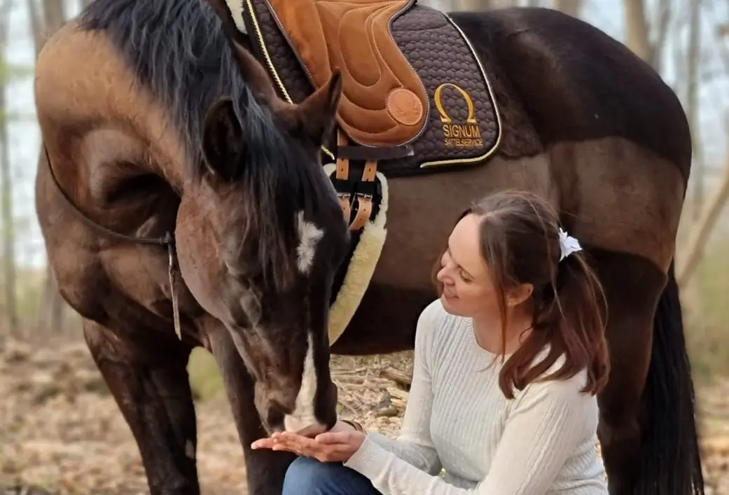 Jenny nimmt auf ihrem YouTube-Kanal "Blindly Follow Horses" ihre Fans mit durch ihren Alltag mit ihrem Quater-Wallach Bill. Was man ihr dabei kaum anmerkt, ist ihre Sehbehinderung. Ihr Sehvermögen beschränkt sich auf knapp 10%, was sie aber nicht davon abhält, aktiv im Reitsport zu sein! Bereits seit vielen Jahren setzt Jenny auf SIGNUM-Equipment vom Maßsattel bis zum Kappzaum und Reitpad. Berichte darüber hat sie auf ihrem YouTube-Kanal und ihren Social Media Kanälen veröffentlicht.