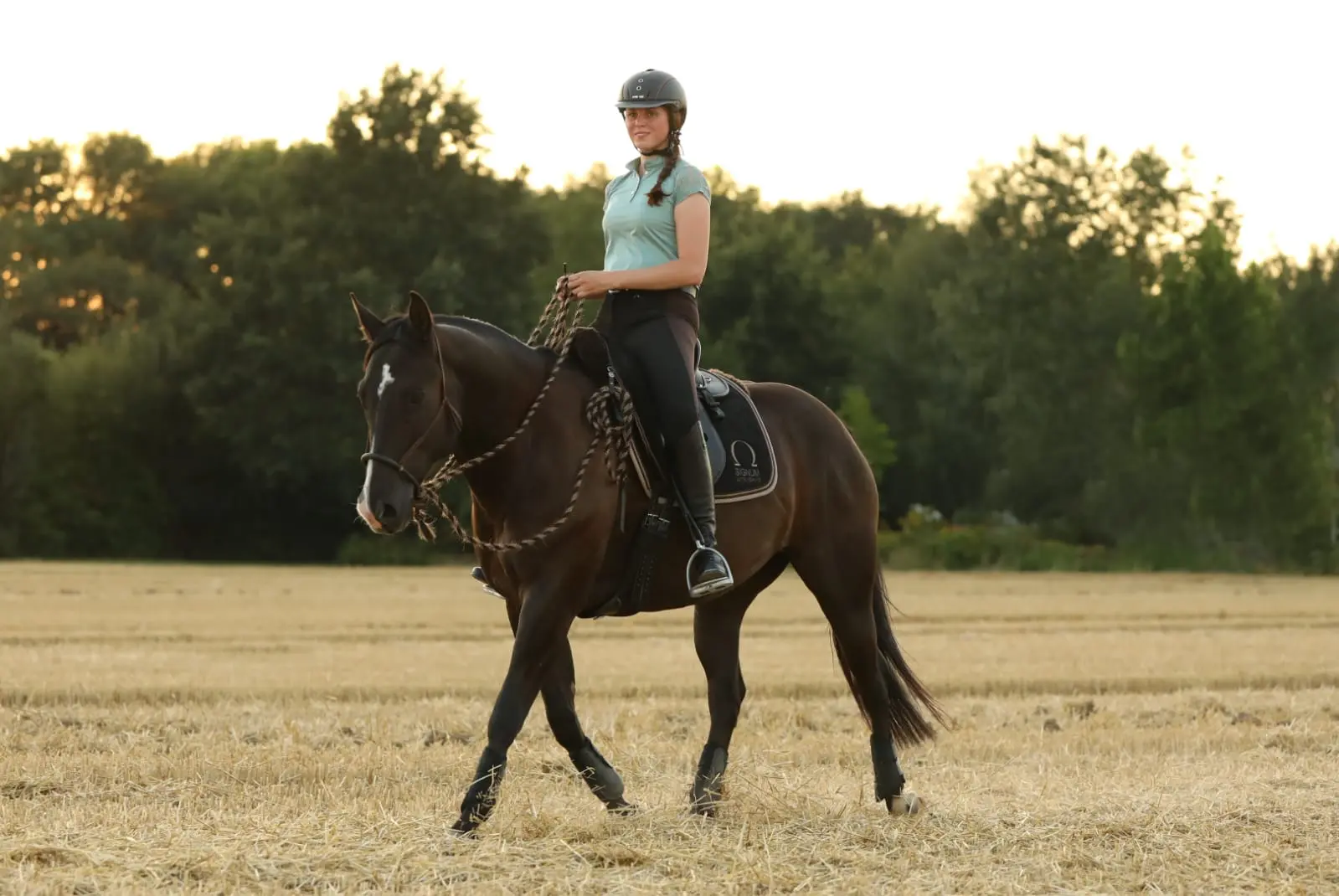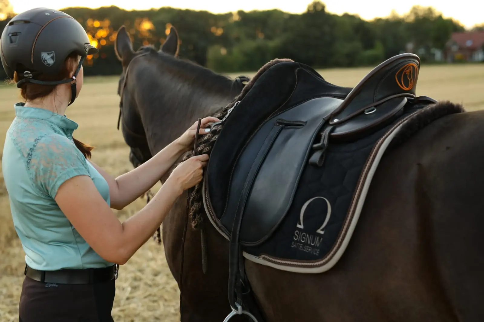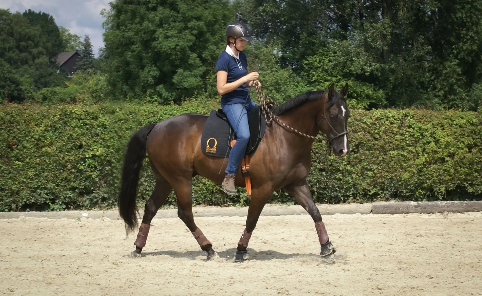 Für ihre Arbeit nutzt Jenny Reitausrüstung von SIGNUM, die für eine feine Kommunikation zwischen Reiter und Pferd entwickelt wurde. Diese Eigenschaften unterstützen Jenny's Trainingsphilosophie, bei der Balance, Leichtigkeit und Harmonie zwischen Mensch und Pferd im Mittelpunkt stehen. Besonders gerne nutzt Jenny die Reitpads von SIGNUM.