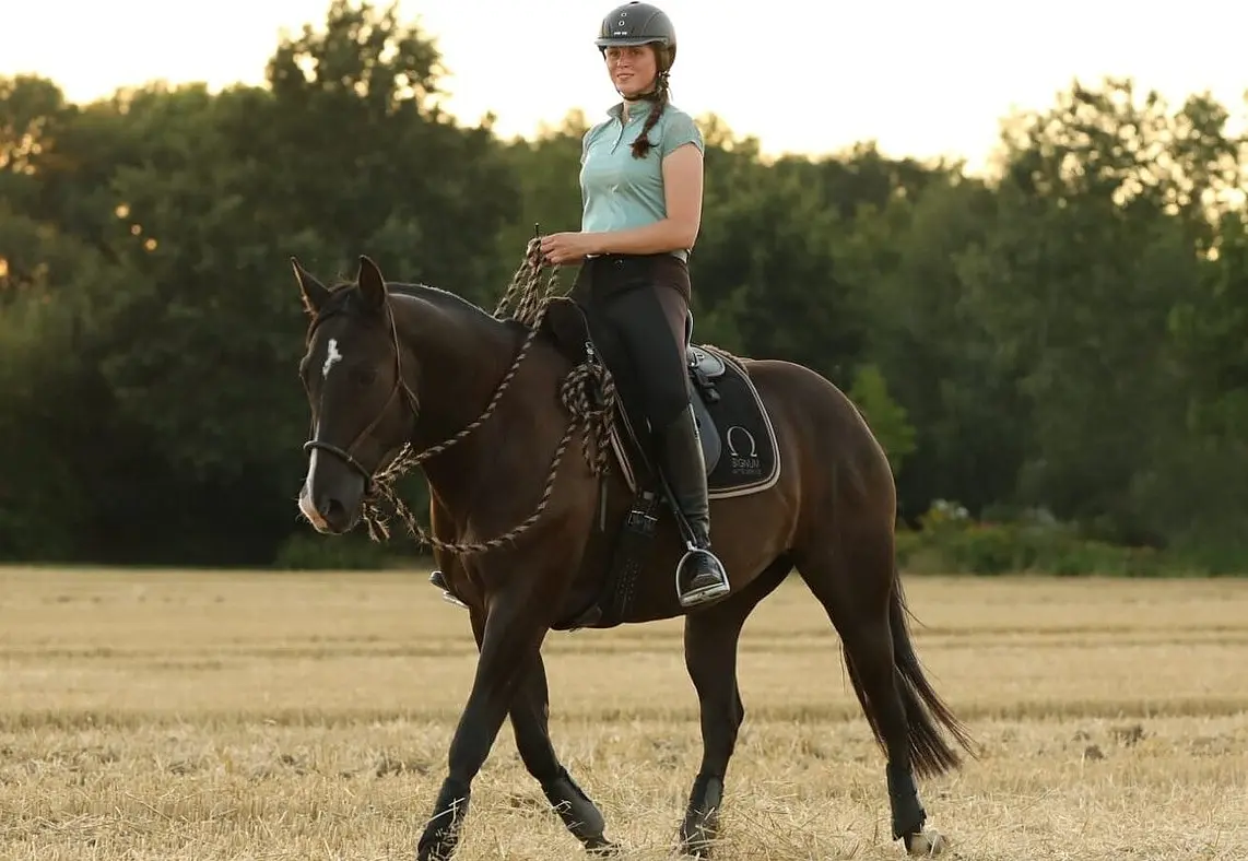 Jenny nimmt auf ihrem YouTube-Kanal "Blindly Follow Horses" ihre Fans mit durch ihren Alltag mit ihrem Quarter-Wallach Bill. Was man ihr dabei kaum anmerkt, ist ihre Sehbehinderung. Ihr Sehvermögen beschränkt sich auf knapp 10%, was sie aber nicht davon abhält, aktiv im Reitsport zu sein! Bereits seit vielen Jahren setzt Jenny auf SIGNUM-Equipment vom Maßsattel bis zum Kappzaum und Reitpad. Berichte darüber hat sie auf ihrem YouTube-Kanal und ihren Social Media Kanälen veröffentlicht.