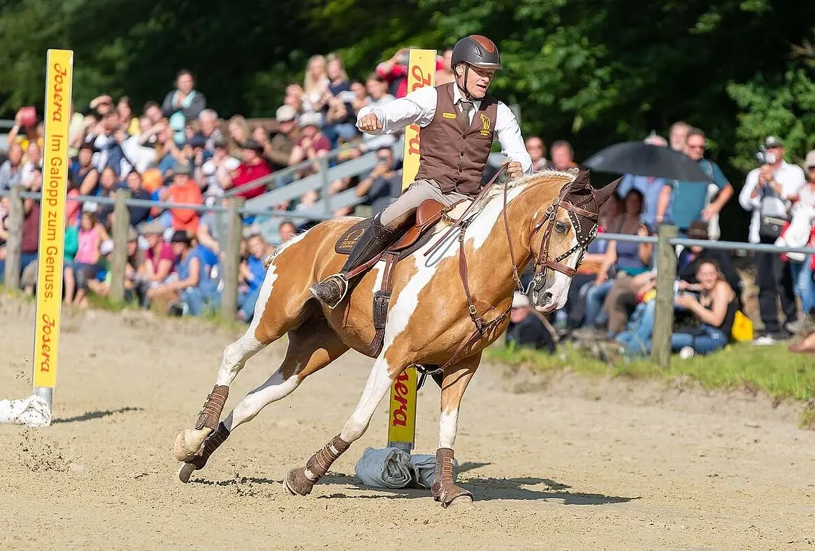 Im Speedtrail werden Pferd und Reiter in diesem Hindernis auf eine echte Probe gestellt. Nur wer sein Können und die Bereitschaft seines Pferdes richtig einschätzt und dabei seine Linie halten kann ohne den Fluss zu unterbrechen kann in diesem Hindernis eine Bestzeit erreiten. Wenn dies gelingt verschmelzen Pferd und Reiter zu einer Einheit und es ist eine Augenweide dabei zuzusehen.