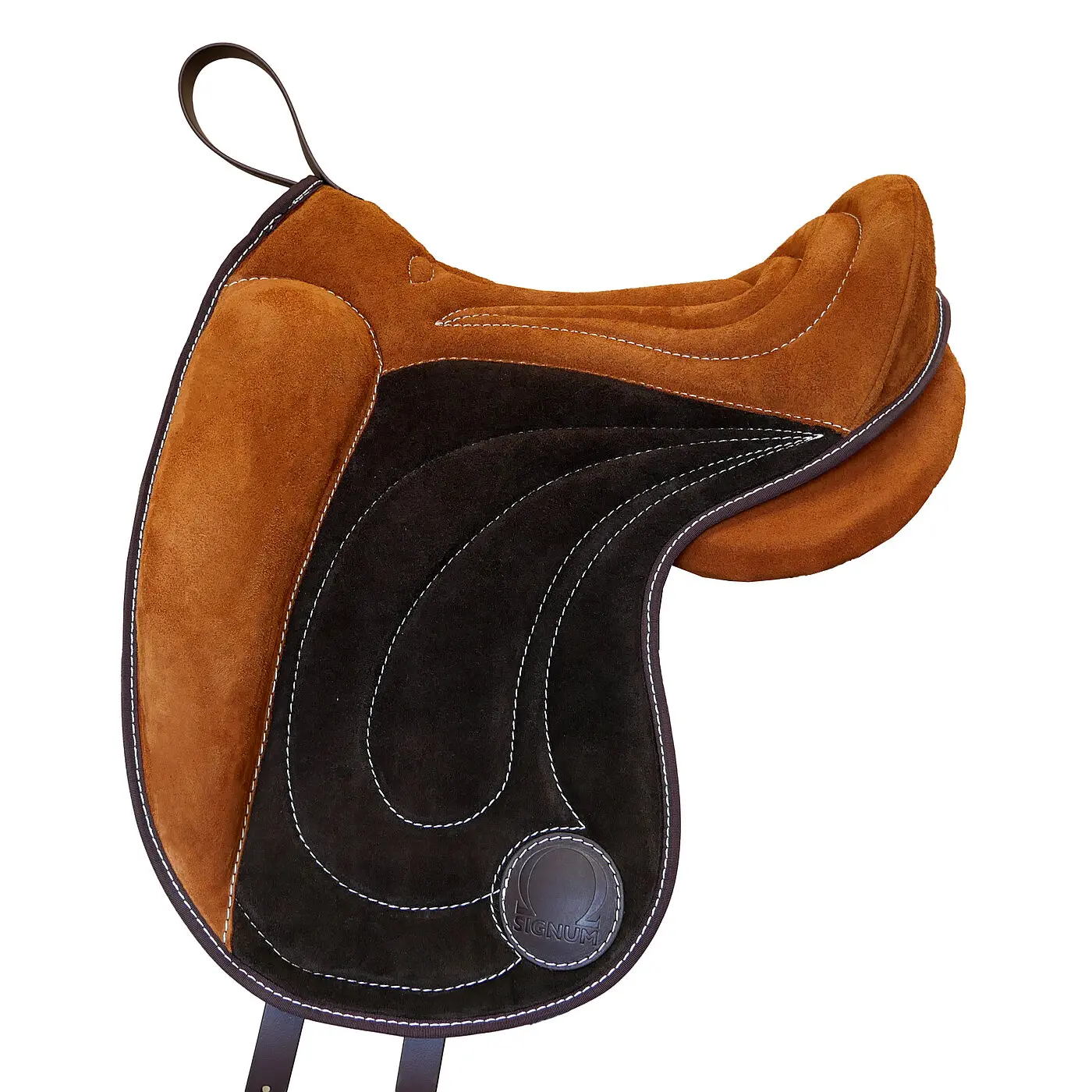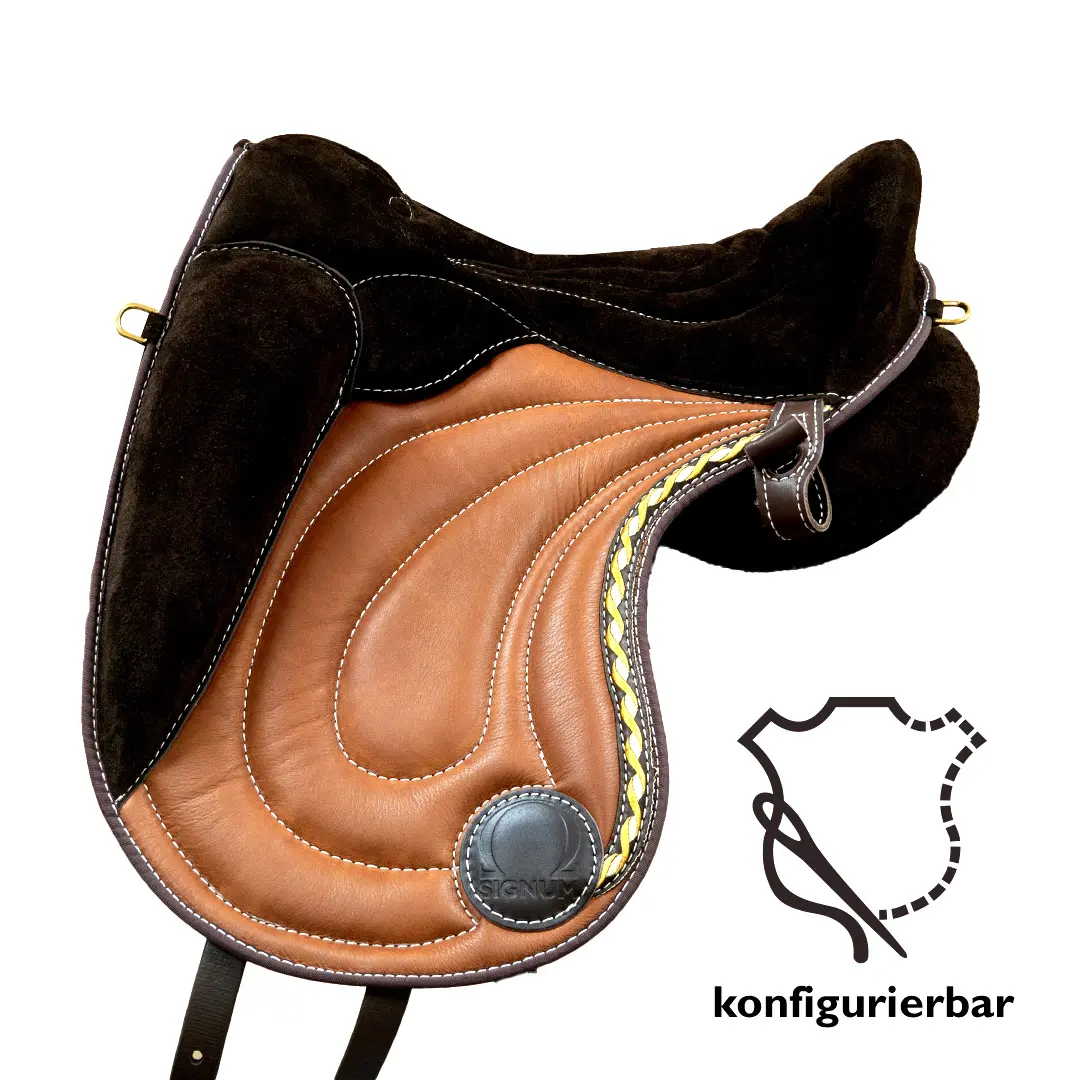 - Der Reiter erfährt bei dieser Sitzausformung deutlichere Unterstützung durch das Reitpad.