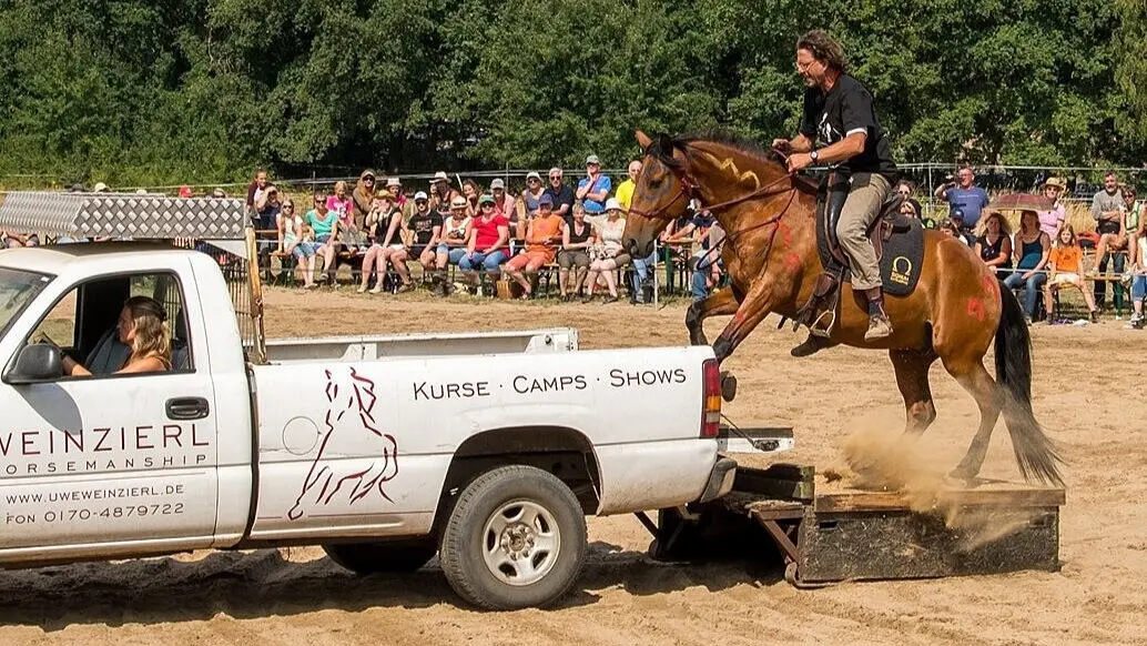 Bei Uwe und Constanze Weinzierl ist Horsemanship mehr als eine pferdefreundliche Trainingsmethode. Es ist Spaß und Lebensfreude mit dem Partner Pferd. Ihr Ausbildungsngebot bieten sie in Kursen, Camps oder in Online-Seminaren an. Es reicht von den ersten Schritten in der Kommunikation mit dem Pferd, über Verladetraining bei Problempferden bis hin zur Verfeinerung der Freiarbeit, Stunts oder Showbildern. Lasst euch vom fröhlichen Lebensgefühl der beiden anstecken und begebt euch auf zu neuen Abenteuern mit eurem Pferd.