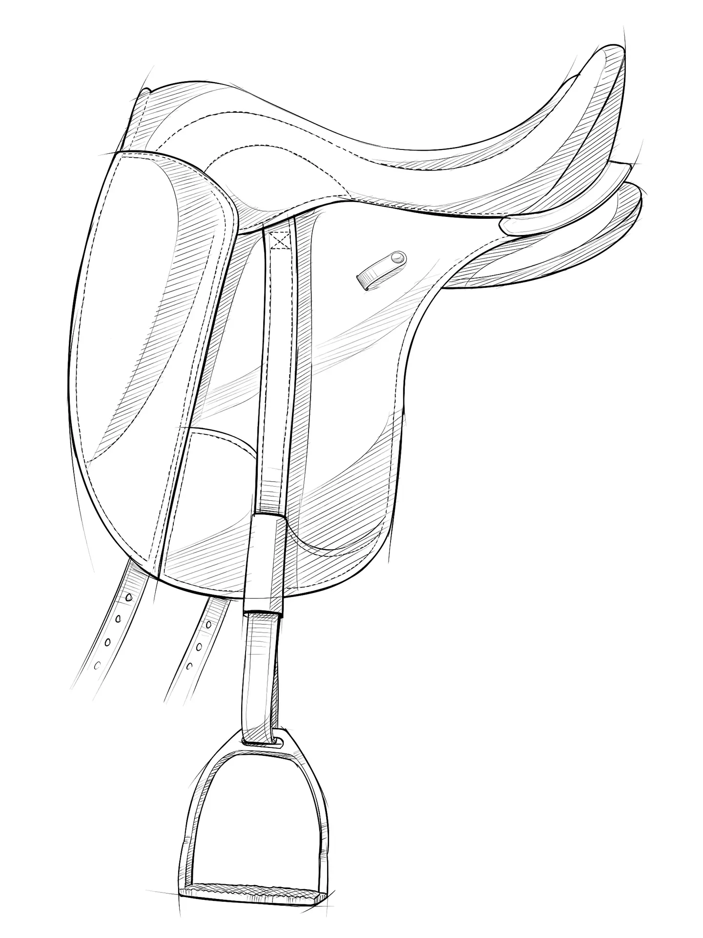 Ein Dressursattel oder SIGNUM Dressur-PADDLE® verfügt typischerweise über ein tiefes Sitzprofil, ein langes Blatt und ausgeprägte Kniepauschen für einen tiefen, stabilen Sitz und ein ruhiges Bein.